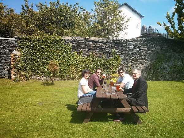 And here’s a photo of the helpers having a relaxing drink after the day was over – from right-left: Amanda, Tomi, Wayne, Fred.