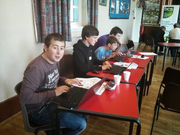 The Bro Ddyfi IT club lot (Tomi, @robertarthurbt, Little Cake Kid and @misterlukeherb) with their heads down looking busy and keen