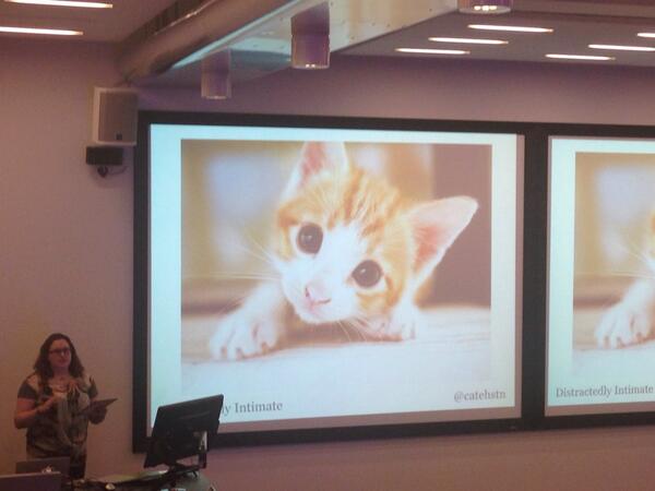 Cate from Google talked about mobile computing and how our relationship with mobile devices is different to the relationship we have with physical devices. Despite missing this talk I have a good idea about what Cate said, as she’s kindly put up a blog post with an overview of the talk: check out Distractedly Intimate: Your users on mobile over at catehuston.com. Here’s a picture of Cate in action, again from Olya: