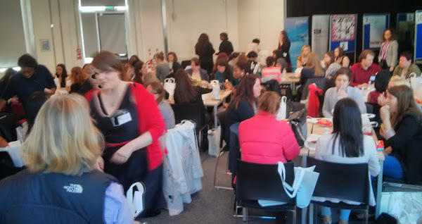 For the panel session we have a group of women on “stage” who are at different stages of their computing careers, and open up to questions from the floor on any topic at all. So the students get to ask any question they like. This year we were very lucky to have Sarah Lamb, founder of Girl Geek Dinners on the panel, as well as Anne Marie Imafidon (our keynote speaker, and founder of Stemettes); Cate Huston from Google (who also spoke earlier); Sarah Burnett, deputy chair of BCSWomen, and myself. Notably, Sarah Lamb came with her son (who is 12 weeks old) – it’s the first time we’ve had a baby on the panel!
