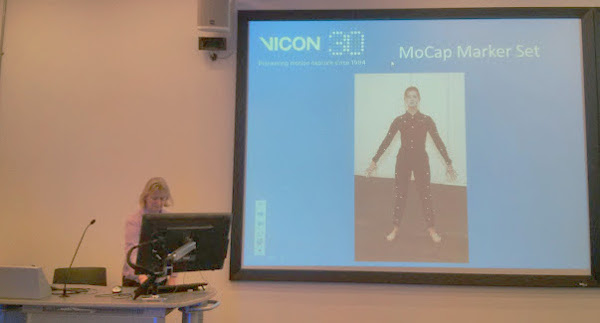 Jane Haslam has spent her career working in industry, looking at how we can build computer systems that can see. She’s working at VICON now, who are the industry leaders in motion capture software (think Gollum, and people in bodysuits covered in retro-reflective ping pong balls). Her talk introduced the idea of motion capture and showed some of the state-of-the-art work going on in VICON: they can replace human actors with computer animated characters in real-time using their whole-body tracking software. She then went on to discuss Cara, which is a new face-tracking system. Cara usese makeup-based markers and can track detailed facial expressions: not real-time (yet) but super impressive. This talk showed real technical work and research in industry, which is great.