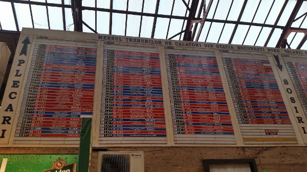 When your starting point is Aberystwyth, travel to anywhere is complicated. To get to Craiova, we had to first get to Luton Airport. Then we spent a night in Bucharest (fitting in a bit of sightseeing), and then it was a 3-4 hour train journey to Craiova. I do love travelling, particularly around new countries, and the journey is absolutely part of the fun. For instance – the departure board at Bucharest train station was quite something: