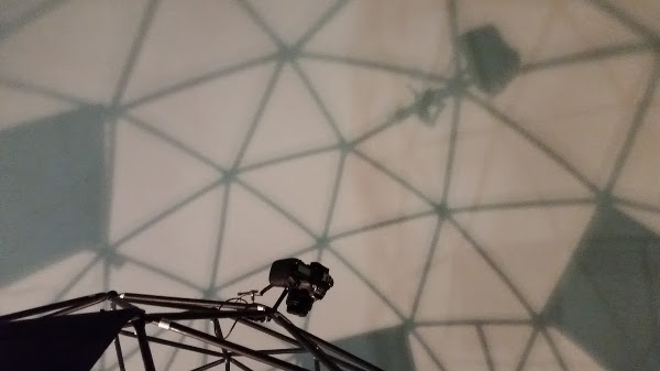 The key ingredient of a Lightstage is a frame which can hold the lights and the cameras equidistant from the target object. We’ve gone for a geodesic dome construction. Here’s a time-lapse video of Geoff from Geodomes.com building ours (a 2 metre 3v dome made out of rigid struts covered in non-reflectant paint). He has a bit of help from Alassane Seck, who did a PhD here in Aberystwyth on Lightstage imaging.