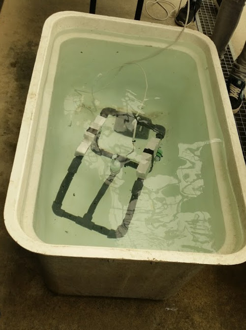 And finally the students got to use their robots in the test pool (CIRS has a massive pool for testing robots). Seeing this come together was great – the students were all fired up to run their contraptions in the water, and they all worked really well.