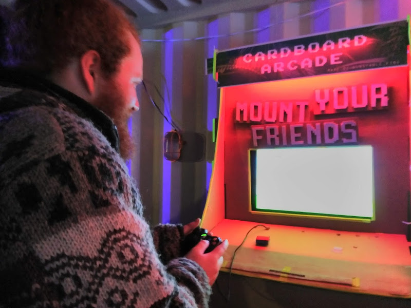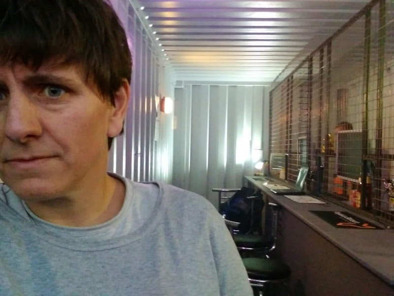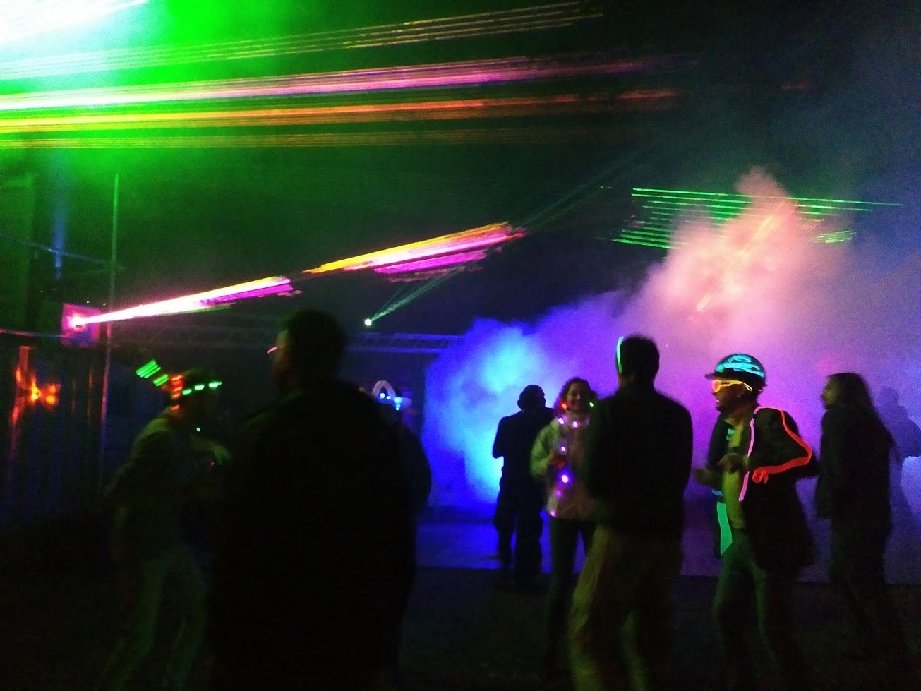 On the Friday I spent most of the day putting together my installation in the Null Sector cyberpunk zone, and generally helping out in Null Sector with carrying, lifting and general tidying up. This was a new element of the festival, made up of a bunch of shipping containers with installations, robots, flame throwers and other cyberpunky goodness. This provided a DJ area and an additional bar to the festival, as well as a night market (night one) and an electronics exchange (night two) and a generally cool place to hang out (all nights). My installation was in the bar, which opened a little later than anticipated.