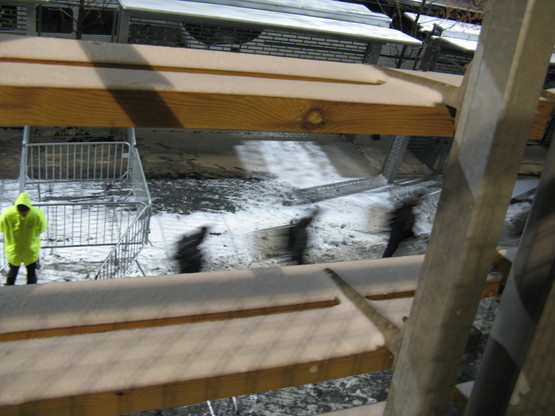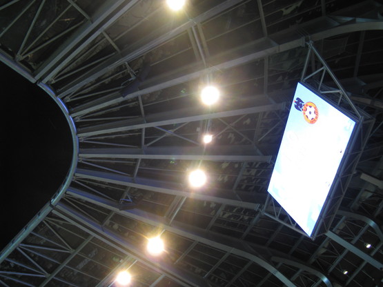The Stade des Alpes is a magnificent building. It opened less than 2 years ago, and according to Wikipedia its solar panels generate 70,000kWh a year. I have no idea what they use those kilowatts for though, it’s certainly not heating. We had to scrape the ice off our seats on arrival. But it is gorgeous.