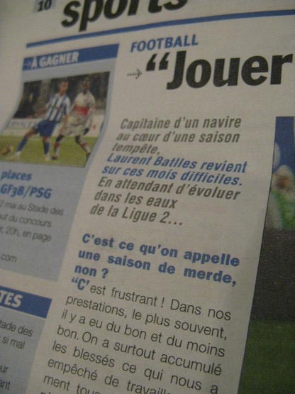There’s an interview with the captain of Grenoble foot 38 in this week’s GRE News, and it’s got a cracking opening question: Rough translation… “Shit season, don’t you think?” 2010-04-19